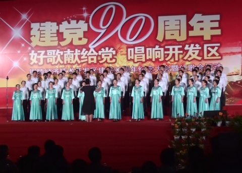6月2日晚上的翠湖廣場,燈火璀璨,微風徐徐。銅陵經濟技術開發(fā)區(qū)舉辦的“好歌獻給黨 唱響開發(fā)區(qū)”喜迎建黨90周年紀念大會暨紅歌會在這里隆重舉行。 天奇藍天與銅冠機械組成的聯(lián)合代表隊參加了活動,以歌曲《歌唱祖國》和《團結就是力量》抒發(fā)了企業(yè)員工對黨的深情厚愛和對銅陵經濟技術開發(fā)區(qū)晉升國家級開發(fā)區(qū)的喜悅心情。