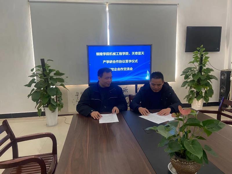 2020年12月15日上午,銅陵學(xué)院機(jī)械工程學(xué)院與我公司簽署戰(zhàn)略合作協(xié)議儀式在綜合樓一樓會(huì)議室隆重舉行。出席儀式有天奇藍(lán)天總經(jīng)理章愛前、財(cái)務(wù)部長(zhǎng)丁繼剛、技術(shù)總工程師范守廣、技術(shù)部長(zhǎng)吳光強(qiáng)、及綜合部部長(zhǎng)施樂勤等,銅陵學(xué)院機(jī)械工程學(xué)院王涇文院長(zhǎng),夏兆清書記等出席戰(zhàn)略合作協(xié)議簽約儀式。 會(huì)上,天奇藍(lán)天公司章總代表公司向各位校領(lǐng)導(dǎo)的到來表示熱烈的歡迎,并介紹了我公司生產(chǎn)經(jīng)營(yíng)情況。他希望校企雙方根據(jù)戰(zhàn)略合作協(xié)議,加快開展實(shí)質(zhì)性、規(guī)范化、系統(tǒng)化的合作步伐,通過相互交流,通過產(chǎn)學(xué)研深度融合,實(shí)現(xiàn)雙方事業(yè)邁上新臺(tái)階。 銅陵學(xué)院機(jī)械工程學(xué)院王院長(zhǎng)首先代表學(xué)院對(duì)天奇藍(lán)天公司邀請(qǐng)和支持表示感謝。他在講話中指出,愿意推進(jìn)與天奇藍(lán)天公司的深度合作,開展科產(chǎn)業(yè)的相互合作,共同推進(jìn)經(jīng)濟(jì)社會(huì)的發(fā)展。 會(huì)后,天奇藍(lán)天公司章總和銅陵學(xué)院機(jī)械工程學(xué)院王院長(zhǎng)簽署了產(chǎn)學(xué)研合作協(xié)議, 本次成功簽約標(biāo)志著我公司與銅陵學(xué)院機(jī)械工程學(xué)院進(jìn)入深度合作的階段,未來將在產(chǎn)、學(xué)、研等各方面共同創(chuàng)新發(fā)展。 |
