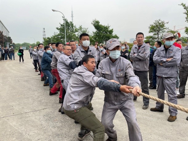 為豐富全體職工的精神文化生活,增強(qiáng)集團(tuán)公司凝聚力,公司于 2022年4月30日舉辦慶“五一〞拔河比賽。每支代表隊(duì)都顯示出最強(qiáng)的比賽陣容,齊心協(xié)力,勇?tīng)?zhēng)第一。 當(dāng)比賽的哨聲響起,隊(duì)員們口中一起高呼著“一二!一二”,雙手緊握長(zhǎng)繩,憋足了勁拼命往后拉,公司領(lǐng)導(dǎo)也在隊(duì)伍旁邊助陣加油,未參賽的員工自發(fā)組成啦啦隊(duì)為比賽隊(duì)員吶喊加油,號(hào)子聲、吶喊聲,此起彼伏,飄蕩在上空。